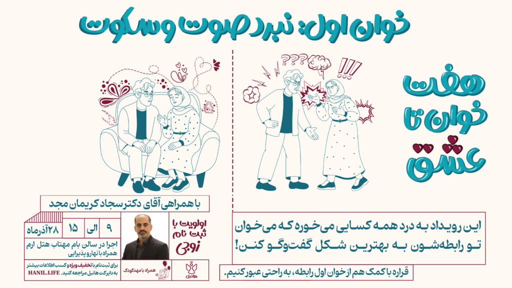 نخستین خوان از مجموعه دورهمیهای هفتخوان هانیل با محوریت یکی از مهمترین مهارتهای زندگی مشترک برگزار میشود: گفتوگوی سالم و مؤثر بین زوجین. ✨